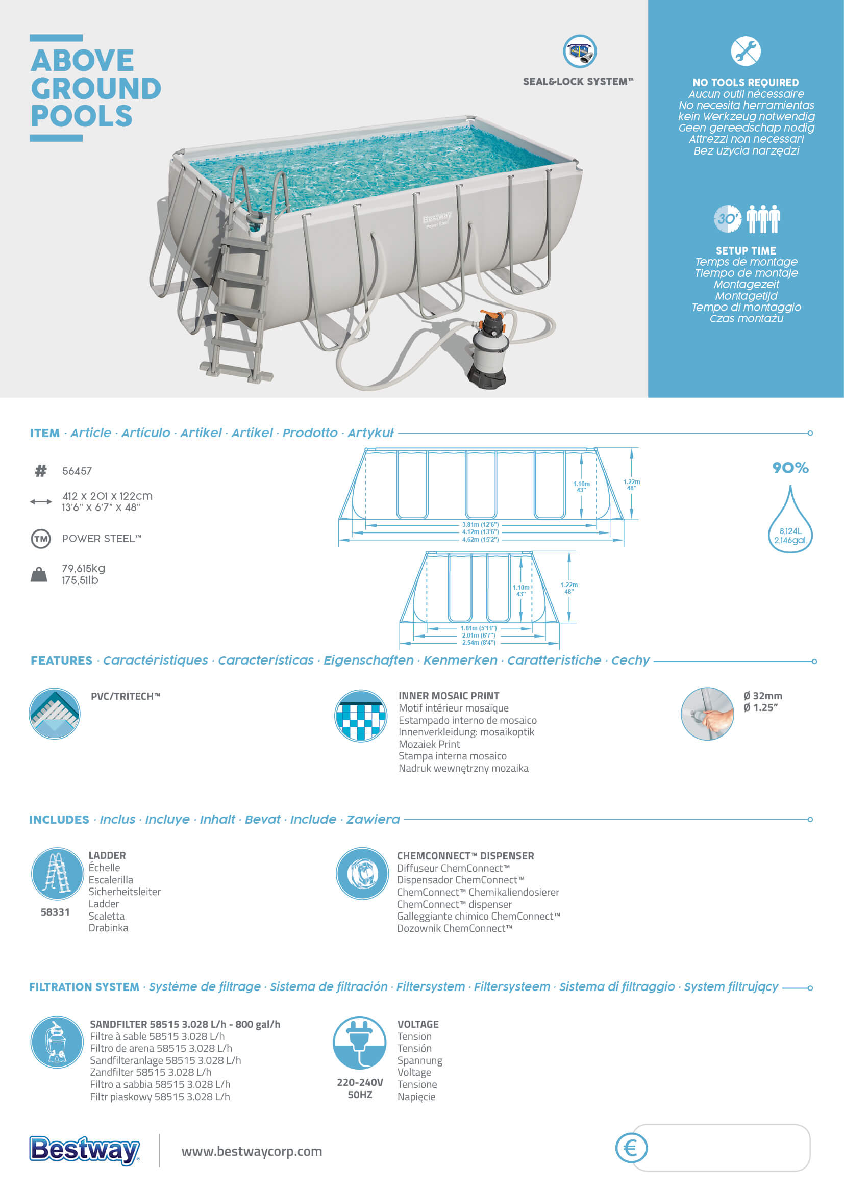 בריכה Bestway מלבנית 412X201X122